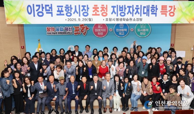 [인천광역신문] 관리자 기자 | 포항시는 29일 평생학습원 소강당에서 열린 제25기 지방자치대학 강좌에서 이강덕 시장이 수강생 100여 명을 대상으로 특강을 진행했다고 밝혔다.