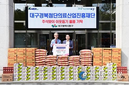 [인천광역신문] 관리자 기자 | 대구경북첨단의료산업진흥재단은 지난 29일, 저소득 취약계층을 위해 10kg 백미 50포, 샤인머스켓 50박스, 라면 50박스, 간이소화기 50개를 동구청에 기탁했다.