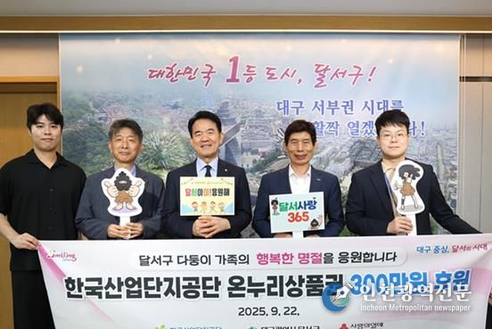 [인천광역신문] 관리자 기자 | 대구 달서구는 한국산업단지공단으로부터 다둥이 가족 지원을 위해 온누리상품권 300매(300만 원 상당)를 기탁받았다고 24일 밝혔다.