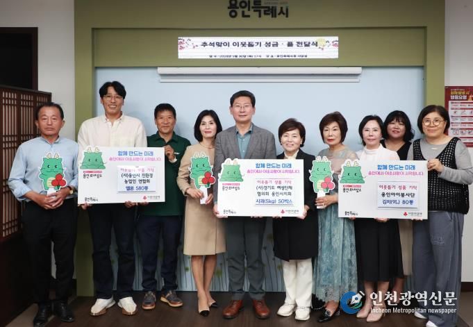 [인천광역신문] 관리자 기자 | 용인특례시는 9월 30일 용인지역의 민간단체와 협회가 추석을 앞두고 어려운 이웃을 돕기 위해 총 1684만원 상당의 성품을 시에 전달했다고 밝혔다.