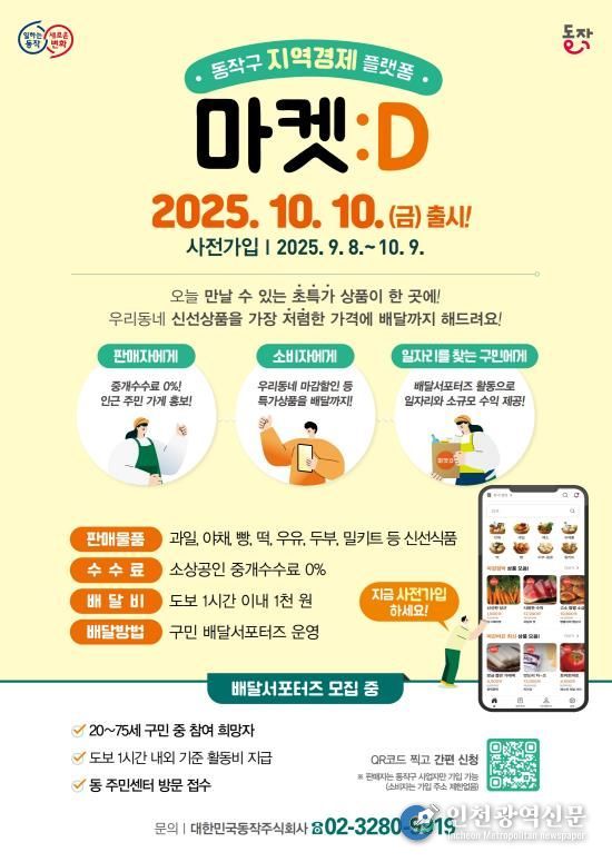 [인천광역신문] 최훈 기자 | 동작구가 지역경제 상생 플랫폼 ‘마켓:D’를 오는 10일 정식 출시한다고 밝혔다.