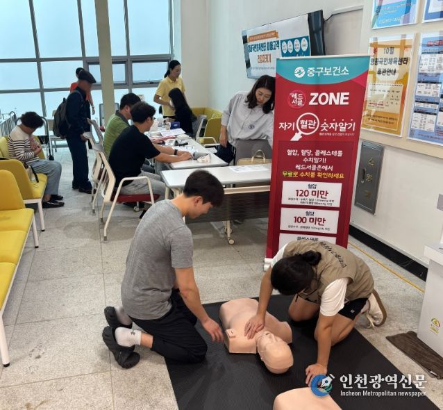 [인천광역신문] 최예준 기자 | 인천중구시설관리공단과 중구보건소는 지난 9월 17일과 9월 24일 영종국민체육센터에서 ‘심뇌혈관질환 예방 관리 및 건강 증진을 위한 합동 캠페인’을 진행했다.