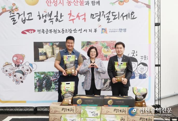 [인천광역신문] 관리자 기자 | 전국공무원노동조합 안성시지부는 지난 30일 추석을 앞두고 지역경제 활성화와 지역 농가 돕기에 앞장서기 위해 조합원을 대상으로 총 1,800만 원 상당의 지역 농산물을 구매하여 배부했다고 밝혔다.