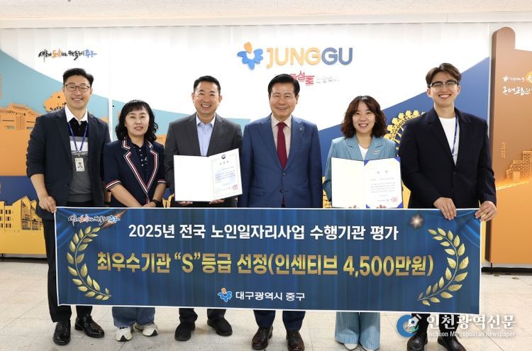 [인천광역신문] 관리자 기자 | 대구 중구는 중구시니어클럽이 노인일자리사업 수행기관 평가에서 4년 연속 최우수기관으로 선정됐다고 밝혔다.