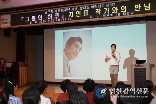 [인천광역신문] 관리자 기자 | 부산 남구는 지난 9월 30일 남구청 개청 50주년을 맞이해, 구청 1층 대강당에서 '제20기 등대빛 아카데미' 3강으로 배우 겸 작가 차인표 씨를 초청해 특별강연을 열었다.