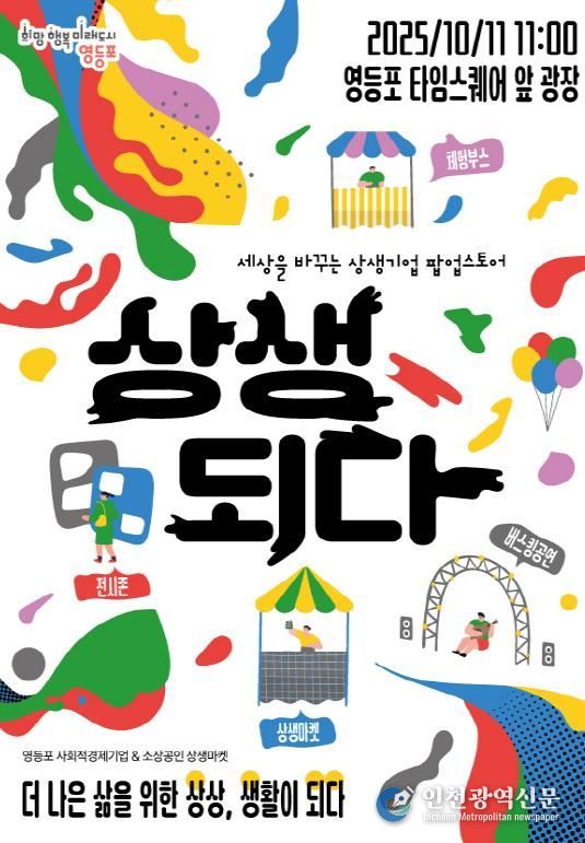 [인천광역신문] 최훈 기자 | 영등포구가 오는 10월 11일 타임스퀘어 앞 광장에서 지역 상생기업이 한자리에 모이는 ‘2025년 상생기업 팝업마켓 – 상생되다’를 개최한다고 밝혔다. 이번 행사는 지역 주민과 소통하고, 제품을 알리며 상생기업의 판로를 넓히기 위해 마련됐다.