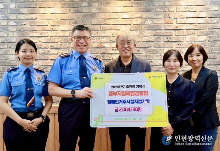[인천광역신문] 최예준 기자 | 중부지방해양경찰청은 지난 1일 연수구청에서 다가오는 추석 명절 지역사회 나눔 실천의 일환으로 중증장애인 거주시설 ‘밝은 마음’에 기부금을 전달했다고 밝혔다.