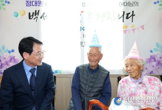이날 100세 어르신께 드리는 청려장과 함께 과일·참치세트 등 위문품을 전달했으며, 케이크 커팅과 기념촬영을 통해 참석자 모두가 어르신들의 장수를 축하하는 시간을 가졌다.
