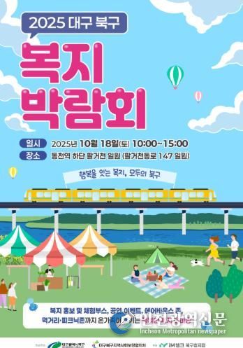 [인천광역신문] 관리자 기자 | 대구 북구청은 오는 10월 18일 오전 10시부터 오후 3시까지, 동천역 하단 팔거천 둔치에서 ‘행복을 잇는 복지, 모두의 북구’를 슬로건으로 '2025 북구 지역복지박람회'를 개최한다.
