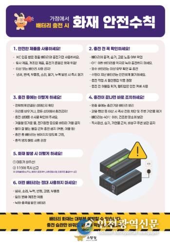 소방서 관계자는 “리튬이온배터리는 우리 생활 곳곳에 사용되고 있는 만큼, 올바른 충전과 보관 습관만으로도 대부분의 화재를 예방할 수 있다”며 “시민 모두가 안전수칙을 숙지해 화재 없는 안전한 생활환경을 만들어가길 바란다”고 말했다.