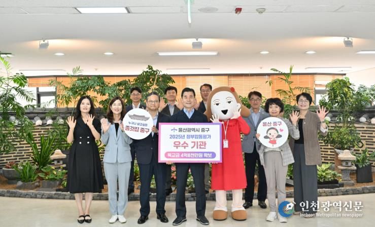 [인천광역신문] 관리자 기자 | 울산 중구가 울산시 주관 ‘2025년(2024년 실적) 정부합동평가 구·군 평가’에서 종합 2위를 달성해 우수기관으로 선정됐다.