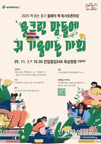 [인천광역신문] 관리자 기자 | 광주 동구는 오는 11월 1일 오후 3시 30분 전일빌딩 245 옥상정원(전일마루)에서 2025 책 읽는 동구 ‘올해의 책’ 독서 토론마당을 개최한다고 밝혔다.