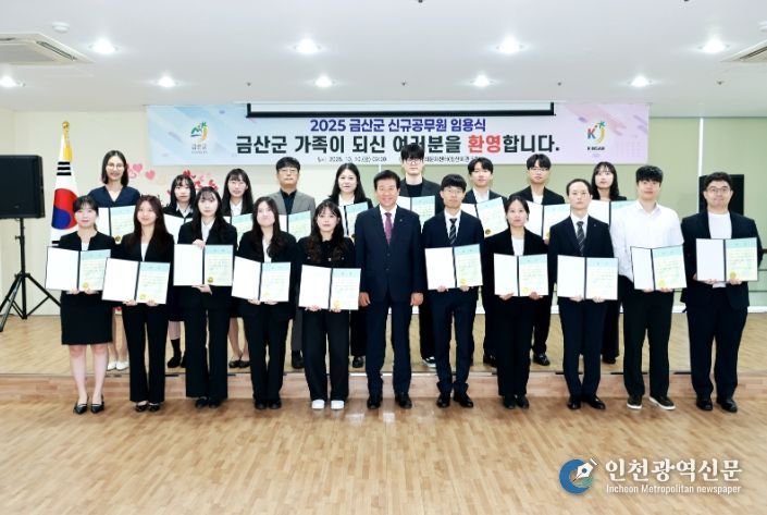[인천광역신문] 관리자 기자 | 금산군은 지난 10일 금산읍 청산회관에서 2025년도 신규공무원 임용장 수여식을 개최했다.
