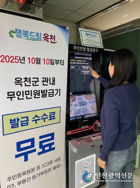 [인천광역신문] 관리자 기자 | 옥천군은 군민들의 민원 편의를 높이기 위해 무인민원발급기에서 발급하는 제증명 수수료를 전면 무료로 전환했다.