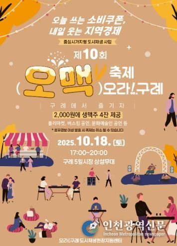 [인천광역신문] 관리자 기자 | 전남 구례군은 오는 10월 18일 오후 5시부터 8시까지 구례읍 5일시장 상설무대 일원에서 '제10회 오맥축제 오라! 구례, 구례에서 즐기자'를 개최한다고 밝혔다.