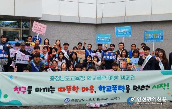 [인천광역신문] 관리자 기자 | 충남교육청은 14일, 서산 성연중학교에서 학생들의 안전한 학교문화 조성을 돕기 위해 ‘등굣길 학교폭력 예방 캠페인’을 실시했다.
