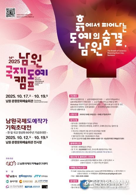 최경식 남원시장은 “제14회 국제도예캠프는 남원의 우수한 도자문화를 세계와 공유하고 도자산업 발전의 기틀을 다지는 중요한 계기”라며 “남원의 가을 대표 축제들과 함께 더욱 다채로운 문화의 향연을 즐기시길 바란다”고 전했다.