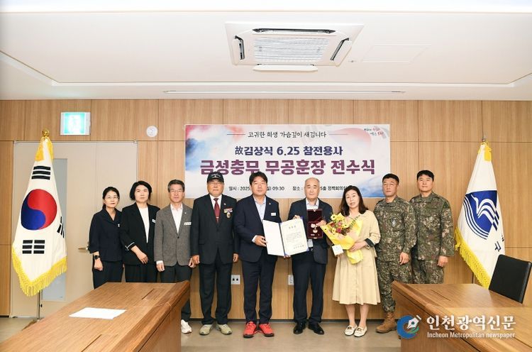 [인천광역신문] 관리자 기자 | 부산 동래구는 지난 13일 6․25전쟁에 참전해 무공을 세운 고(故) 김상식님의 자녀 김형원씨에게 금성충무 무공훈장과 훈장증을 전수했다.