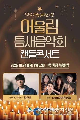 [인천광역신문] 관리자 기자 | 연제구는 10월 24일 오후 6시 30분 소소길 인근에 위치한 부산시청 녹음광장에서 특별한 가을밤을 선사하는 제2차 어울림 틈새음악회 ‘캔들콘서트’를 개최한다.