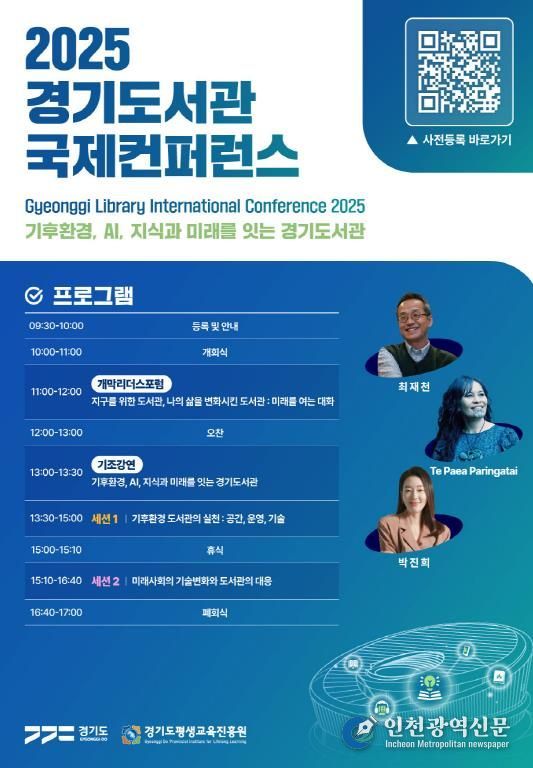 [인천광역신문] 관리자 기자 | 경기도와 경기도평생교육진흥원은 오는 23일 수원컨벤션센터 컨벤션홀3에서 ‘기후환경, AI, 지식과 미래를 잇는 도서관’을 주제로 ‘2025 경기도서관 국제콘퍼런스’를 개최한다.