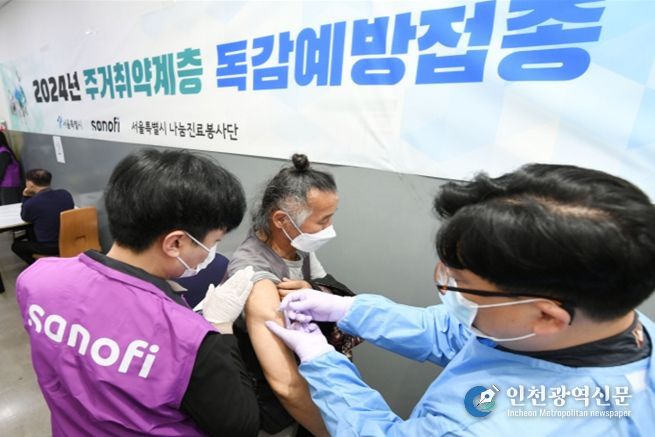 [인천광역신문] 최훈 기자 | 서울시가 올겨울 독감 유행에 대비하여 의료 취약계층인 노숙인과 쪽방 주민의 건강한 겨울나기를 위해 이번 달 30일까지 약 2,300명을 대상으로 독감 예방 무료 접종을 실시한다.