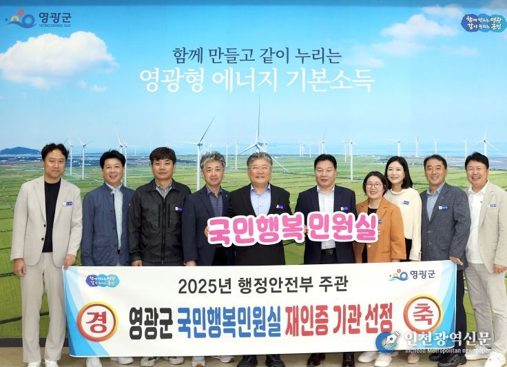 [인천광역신문] 관리자 기자 | 영광군은 행정안전부가 주관하는'국민행복민원실 재인증'기관으로 선정됐다고 14일 밝혔다.