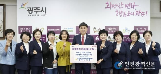 (사)경기도여성단체협의회 광주시지회 양미순 회장은 “쌍령동 주민총회 등 지역 행사에서 운영한 판매 부스를 통해 마련한 성금을 기부하게 되어 뜻깊다”며 “앞으로도 사회적 약자를 위한 나눔 활동을 이어가겠다”고 밝혔다.