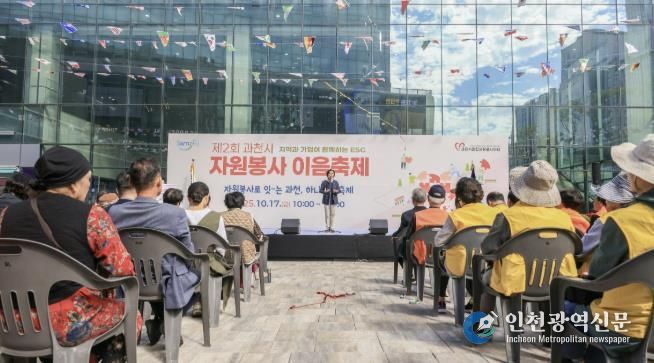 [인천광역신문] 관리자 기자 | 과천시는 지난 17일, 과천 지식정보타운 스마트케이 썬큰광장에서 과천시종합자원봉사센터 주관으로 ‘제2회 과천시 자원봉사 이음축제’를 성황리에 개최했다고 밝혔다.