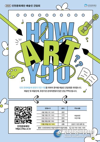 [인천광역신문] 최예준 기자 | (재)인천문화재단이 오는 10월 29일 오후 2시, 인천공연예술연습공간에서 예술인 간담회 'HOW ART YOU?' 환류 간담회를 개최한다.