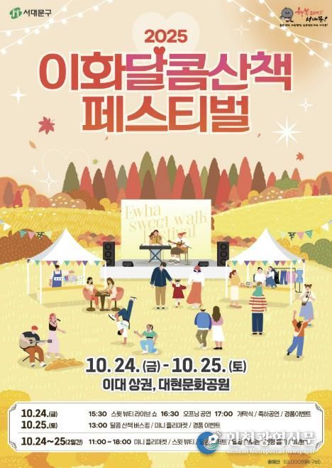 [인천광역신문] 최훈 기자 | 서대문구가 이달 24일과 25일 이대 앞 대현문화공원(대현동 146)과 이대 상권에서 ‘이화 달콤산책 페스티벌(Ewha Sweet-Walk Festival)’을 개최한다.