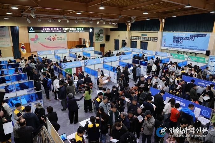 [인천광역신문] 관리자 기자 | 인천 미추홀구는 22일 구청 대회의실에서 장애인의 안정적 취업 지원과 사회참여 확대를 위한 ‘2025 장애인 일자리 박람회’를 성황리에 개최했다.