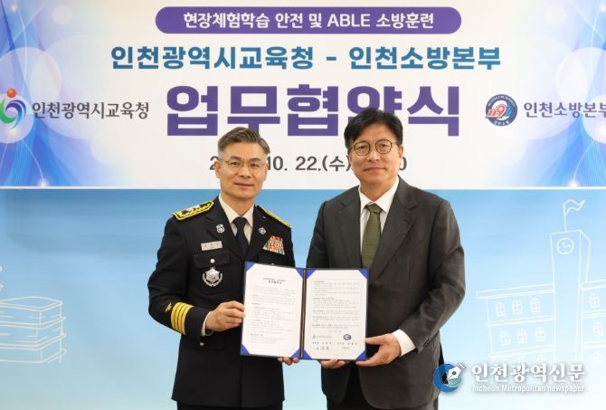 [인천광역신문] 관리자 기자 | 인천광역시교육청은 22일 인천소방본부(본부장 임원섭)와 ‘현장체험학습 안전요원 및 ABLE 소방훈련 협력을 위한 업무협약’을 체결했다.