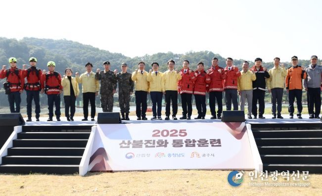 [인천광역신문] 관리자 기자 | 김민석 국무총리는 10월 22일 오전, 충남 공주에서 산림청, 행정안전부, 국방부, 소방청 및 충남도, 공주시 등 관계기관이 참여한 「2025년 산불진화 통합훈련」을 참관했다.