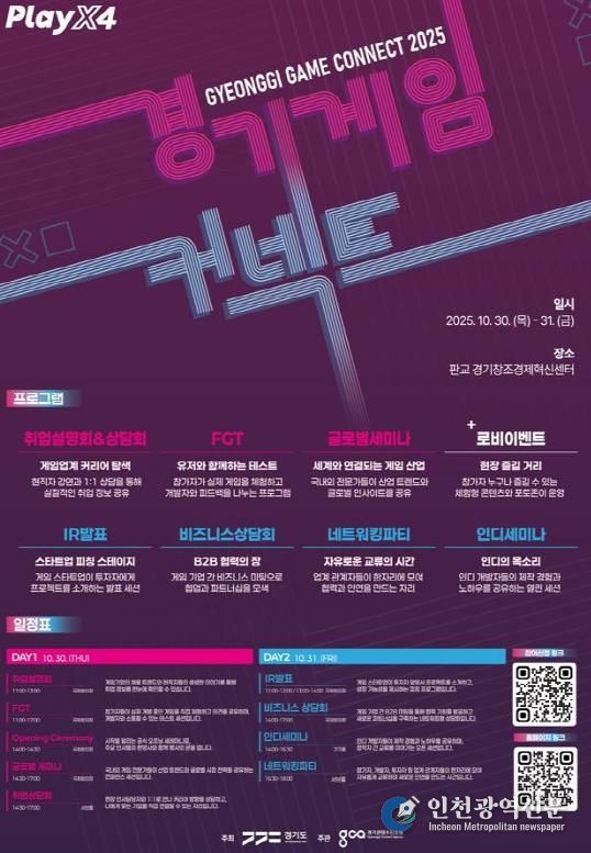 [인천광역신문] 관리자 기자 | 경기도가 오는 30일과 31일 이틀간 판교 경기창조경제혁신센터에서 ‘경기게임커넥트 2025’를 개최한다.