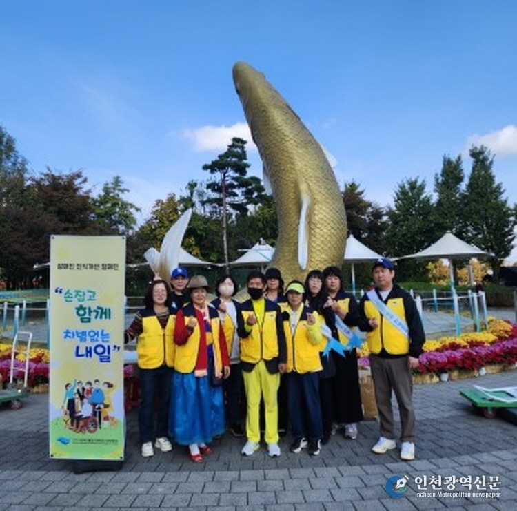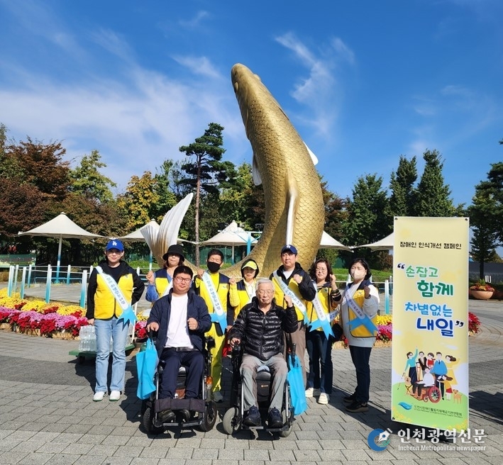 인천시 장애인 활동지원 제공기관 연합회 회장(이한덕)은 지난25일 회원들과 함께 인천 계양 경인아라온 국화축제 현장에서 생수와 시장가방을 배포하며 장애인 인식개선 캠페인 행사를 가졌다.