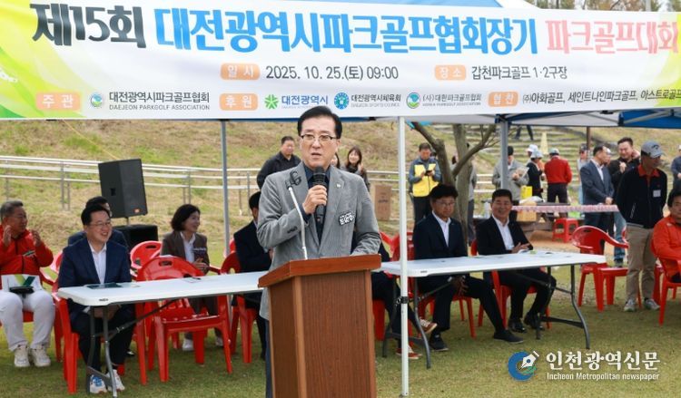 [인천광역신문] 관리자 기자 | 대전시의회 조원휘 의장은 25일 갑천파크골프 1구장(유성구 탑립동)에서 개최된 제15회 대전광역시협회장배 파크골프대회에 참석해 안전한 대회 진행을 기원하며, 일류 체육도시 대전 조성을 위한 정책적 관심과 지원을 약속했다.