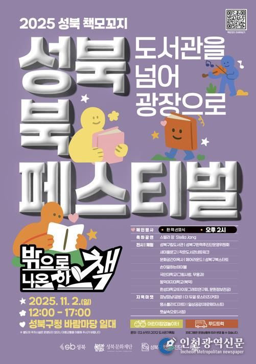 [인천광역신문] 최훈 기자 | 서울 성북구는 오는 11월 2일 ‘밖으로 나온 한 책 : 도서관을 넘어 광장으로’를 주제로 성북 북페스티벌을 개최한다. 이번 행사는 6년 만에 야외에서 열리는 성북구의 대표 독서문화축제로, 주민과 도서관, 유관기관, 지역대학, 로컬 상점이 함께 만드는 책의 축제다.
