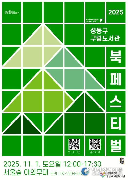 [인천광역신문] 최훈 기자 | 서울 성동구 구립도서관에서는 11월 1일 서울숲 야외무대에서 ‘시대정신과 문학’을 주제로 ‘2025 성동구 구립도서관 북 페스티벌’을 개최한다.