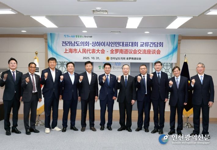 [인천광역신문] 관리자 기자 | 전라남도의회는 10월 31일 오전 도의회에서 중국 상해시 인민대표대회 대표단을 공식 접견하고, 양 지역 지방의회 간 우호교류 및 협력 방안을 논의했다.
