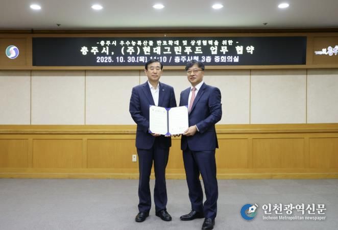[인천광역신문] 관리자 기자 | 충주시가 지역 농특산물의 소비 기반 확대와 농가 소득 안정화를 위해 국내 대표 식품기업인 현대그린푸드와 손을 맞잡았다.