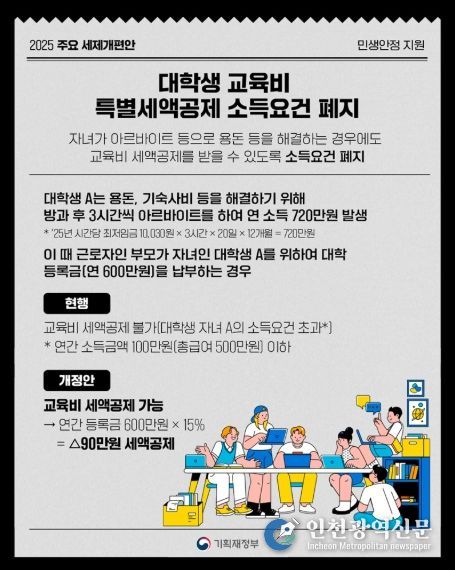 [인천광역신문] 관리자 기자 | 대학생 교육비 특별세액공제 소득요건 폐지
