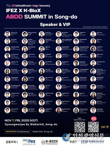 윤원석 인천경제장은 “AI와 바이오의 융합은 단순한 기술 혁신을 넘어 인간의 생명과 건강을 바꾸는 패러다임 전환”이라며“차세대 생명과학의 혁신적 변화를 이끄는 석학들이 총집결한 이번 행사는 인천이 ‘세계적인 AI-Bio 허브’로 도약하는 첫걸음이 될 것”이라고 밝혔다.