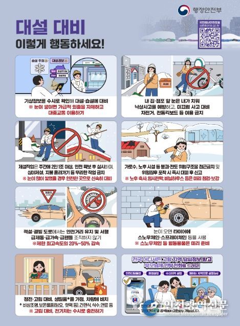 지난해 11월 대설로 인명피해와 함께 많은 재산피해가 발생한 만큼, 적설 취약구조물은 전수 점검해 필요시 보수·보강하고, 국민행동요령을 적극 홍보할 것을 요청했다.