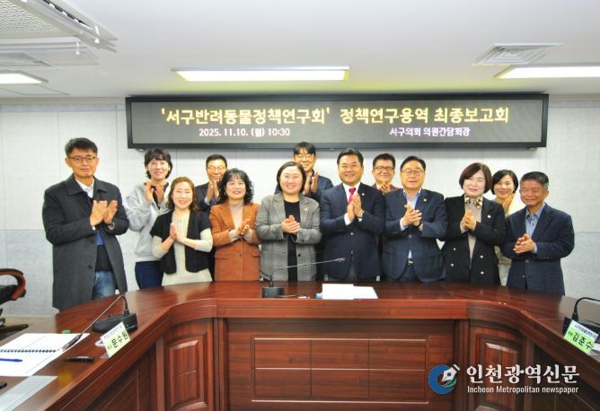 [인천광역신문] 최예준 기자 | 인천서구의회 서구반려동물정책연구회(대표의원 홍순서)는 10일‘서구 반려동물 놀이터 조성방안’정책연구용역 최종보고회를 개최했다.