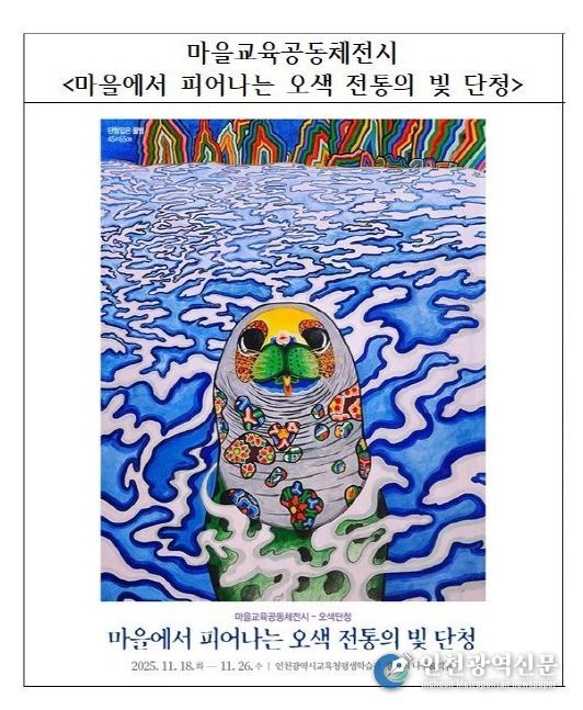 [인천광역신문] 최예준 기자 | 인천광역시교육청평생학습관은 11월 18일부터 26일까지 평생학습관 2층 갤러리 나무와 다솜에서 ‘마을에서 피어나는 오색 전통의 빛 단청’ 전시를 개최한다.