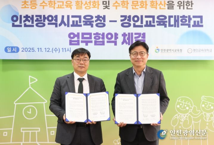 [인천광역신문] 최예준 기자 | 인천광역시교육청은 12일 초등 수학교육 활성화와 수학 문화 확산을 위해 경인교육대학교와 업무협약을 체결했다고 밝혔다.
