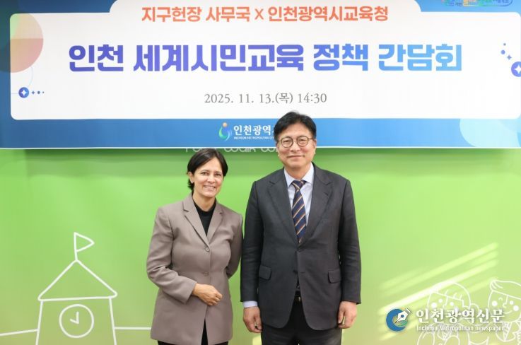 [인천광역신문] 관리자 기자 | 도성훈 인천광역시교육감은 13일 지구헌장 사무국 (Earth Charter International) 미리안 빌렐라 사무총장과 만나 인천형 세계시민교육과 평화교육의 확장 방안을 논의하고, 양 기관 간 협력 체계를 강화하기로 뜻을 모았다.