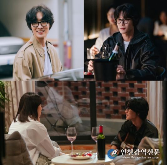 따뜻한 조명 아래, 와인잔이 놓인 테이블 사이에 둔 두 사람의 실루엣은 이웃 사촌으로 시작될 겨울 멜로의 기류를 예고하며 설렘을 더한다.
