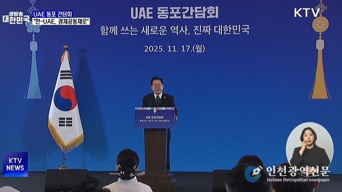 [인천광역신문] 관리자 기자 | 중동·아프리카 순방을 나선 이재명 대통령은 아랍에미리트(UAE) 동포들을 격려하기 위해 17일(현지시간) 아부다비에서 만찬을 겸한 동포간담회를 개최했다.