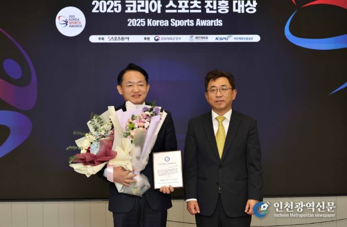 [인천광역신문] 관리자 기자 | 김찬진 인천 동구청장이 지난 18일 서울 종로구 동아미디어센터에서 열린 ‘2025년 코리아 스포츠진흥 대상’리더 부문에서 대상을 수상했다.